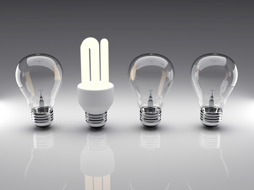 Compact fluorescent light bulbs (CFLs) have been around for a long time and been pushed as the first step in energy efficiency because they give you the same amount of light as incandescents while consuming 75% less energy. Up front cost and perceived light quality issues often keep people from switching. It does take some know-how to pick the right bulb (for the light quality you want and the type of fixture you have) but once you get it right, the cost of the bulb will be more than made up for by a reduction in your energy bill. Check out this guide for picking the right bulb.